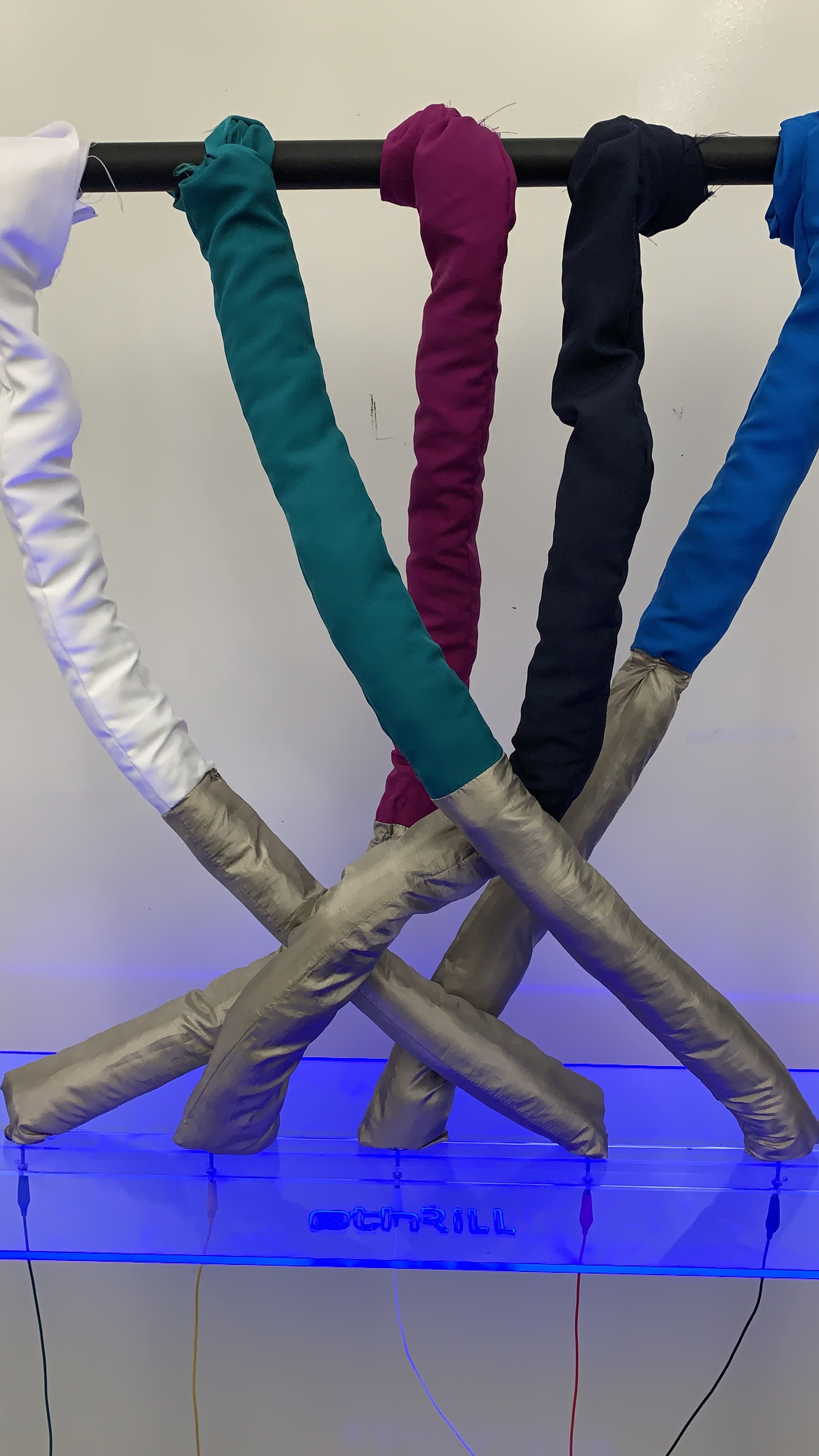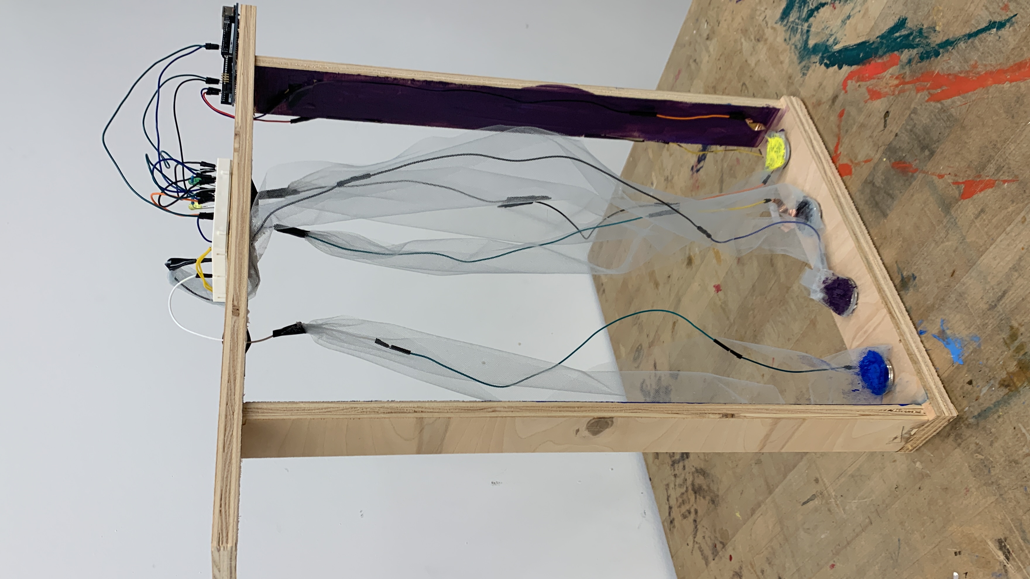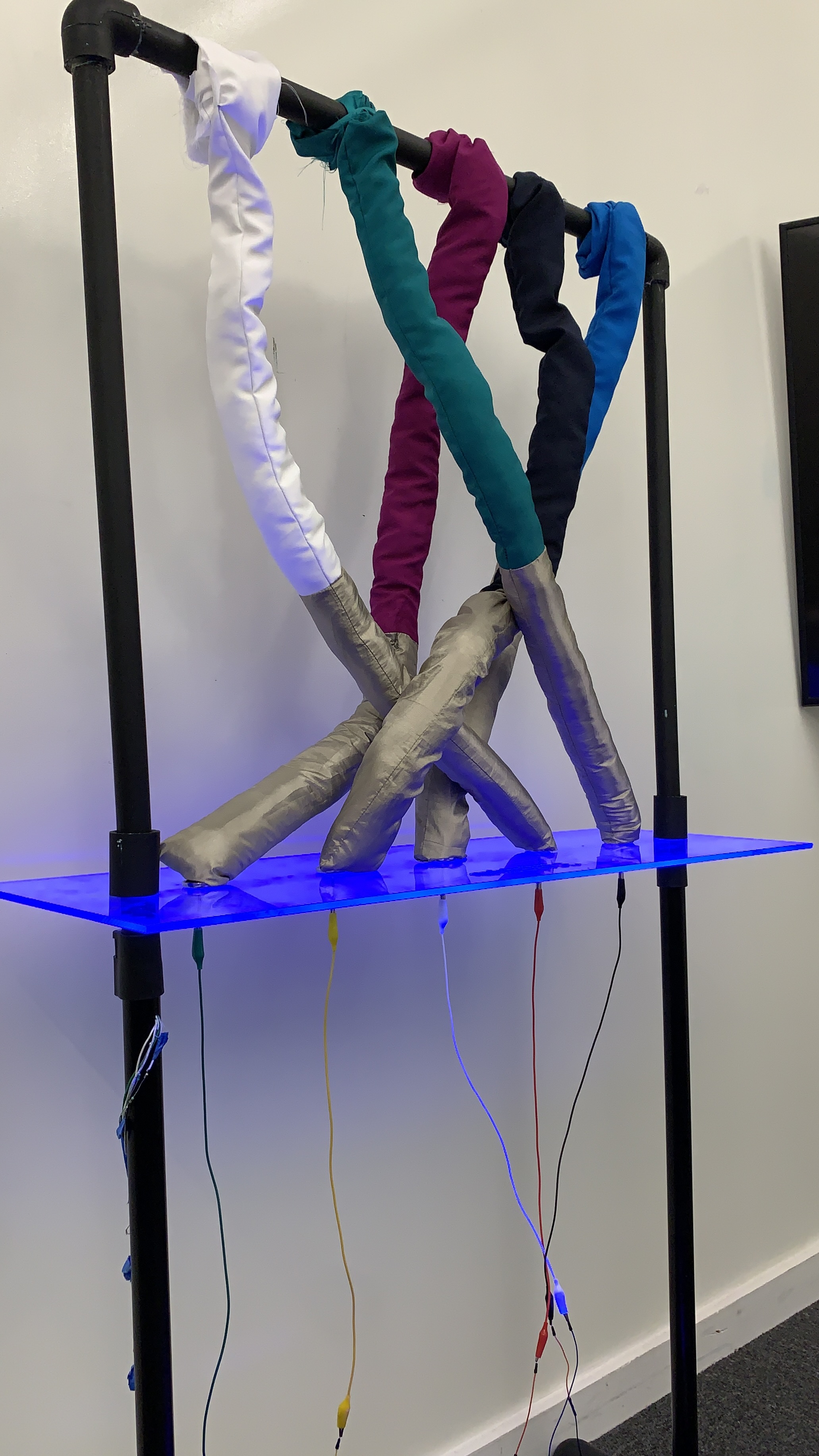 This installation showcases the parallels between mycelium networks and artificial intelligence, emphasizing connectivity, adaptability, and collaboration. Surrounded by the ambient sounds of these earthy-growing connections, participants interact with generative visuals projected on sinewave panels and bricks made from myco-foam, a material grown from mycelium. These panels serve as both visual displays and audio insulators, while the bricks demonstrate eco-sustainable building possibilities.
